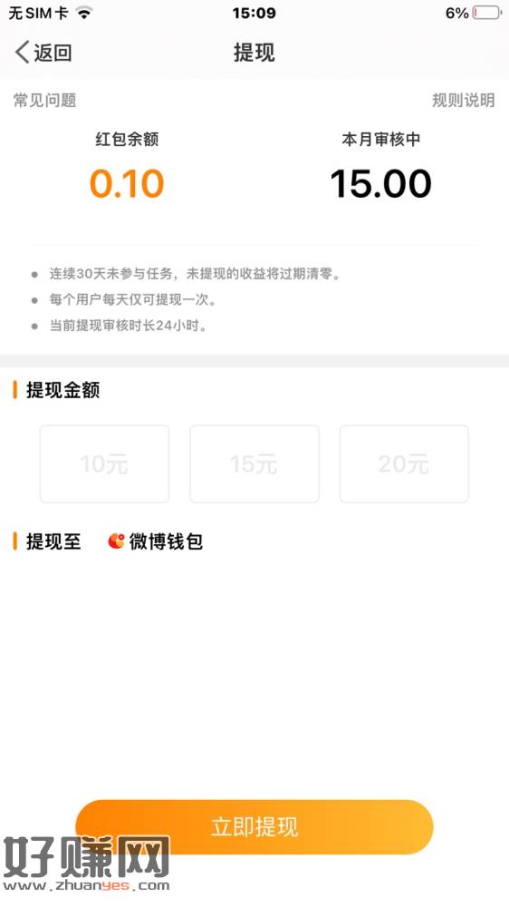 之前玩过那个挺EX微博现金任务的,现在提现最低提现15可以提