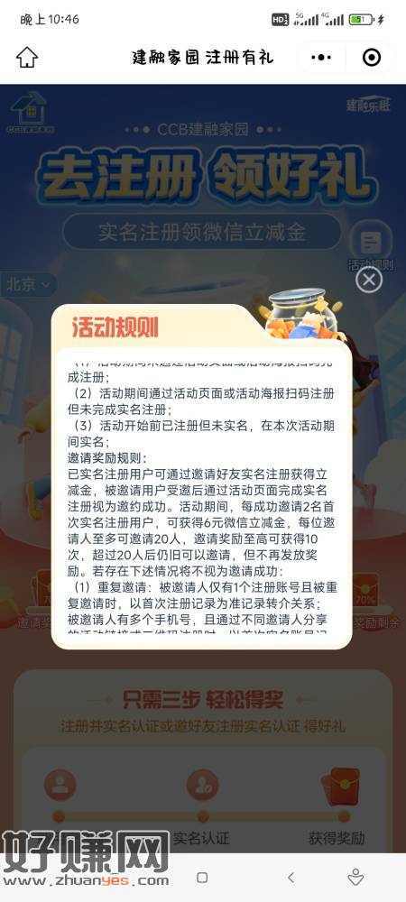ccb建融家园邀请人实名领立减金一人3元,估计还有人没去去看