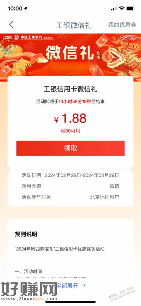 [ 工行北分 ]1.88元微信立减金,可套