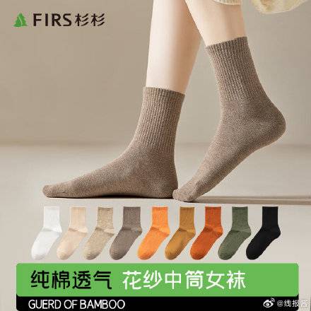 杉杉 女士纯棉中筒袜5双 ,14.9元包邮,不到3元/双