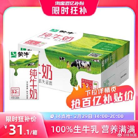 蒙牛纯牛奶全脂250ml*18盒/整箱