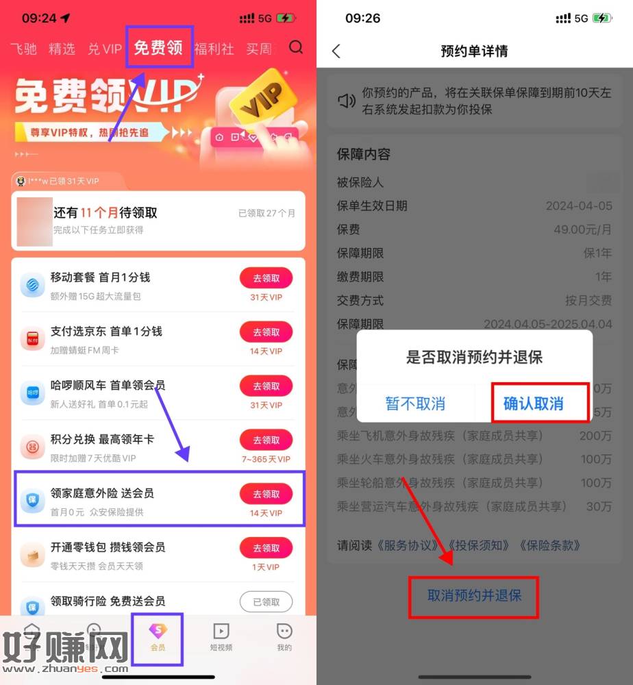 【优酷简单预约保障领14天会员】新一期!优酷APP底部“会员”->顶部“免费领”->找到意外险 跳转直接开得14天会员->最后搜索“蚂蚁保”找到刚刚的退掉就行了