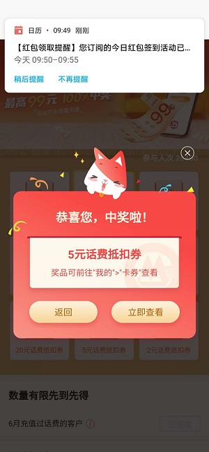 6月充值过话费直接抽奖,无空气