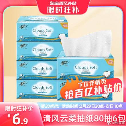 百亿补贴6.9亓 ,清风高端云柔纸80抽*6包