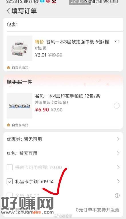 如有网易严选会员,每月一次的会员礼可以选这个15津贴,再去买纸,2元6包,我用了礼品卡,0元