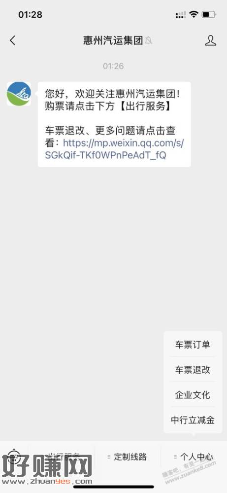关注惠州汽运集团,个人中心,中行立减金