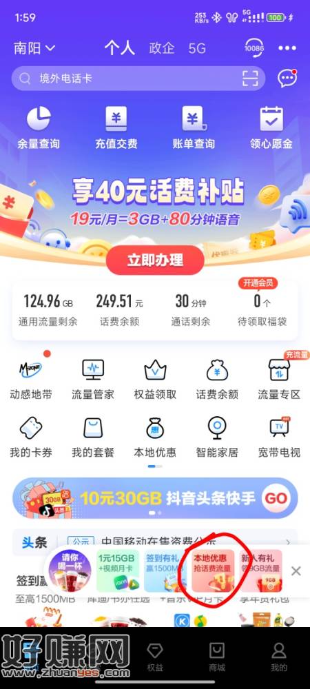 缺流量的可以去抽,如图本地优惠-金币乐园-至高抽100G流量,完成任务简单三次机会,第三次大概率100G通用或头条专用流量。河南地区活动应该,其它地区自测