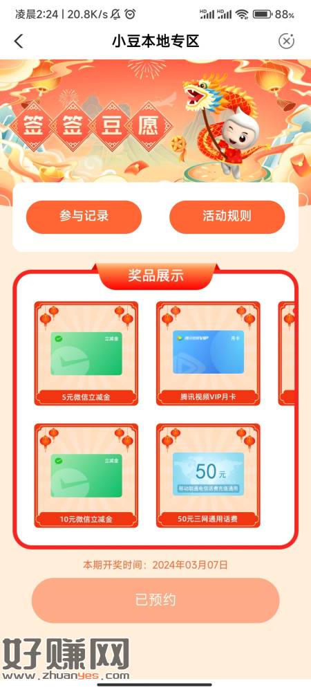 小豆可以换5立减金,10ek,50话费,(小豆签到抽奖3月7号开奖)