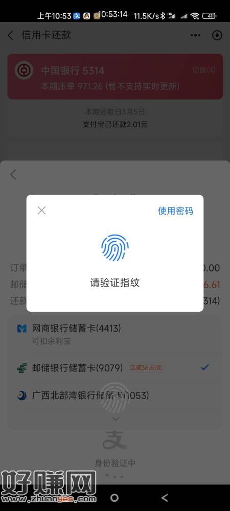 支付宝 邮储银行, 信用卡还款1000 湖南