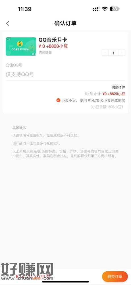 豆不够的可以去接充QQ音乐的,不要豆,利润5左右