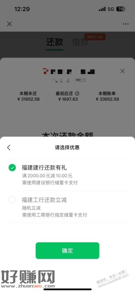 福建建行微信还款10元大毛