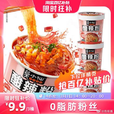 9.9 莫小仙酸辣粉3桶 ,9.9 林家铺子杨枝甘露4罐