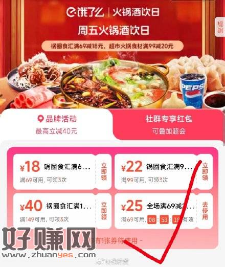 每周五,饿了么可领69-25,可以买叮咚买菜