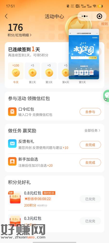 右上签到100积分,先领,到时候换 现在去签到 都是100积