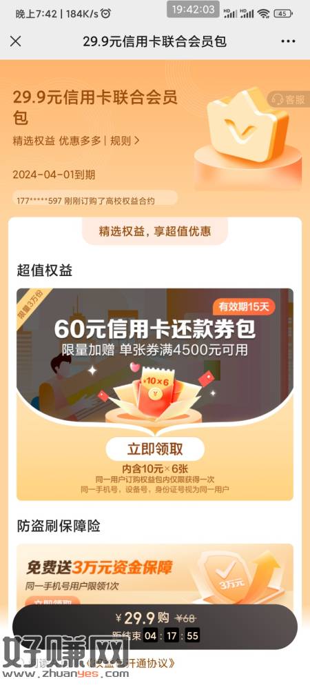 民生银行旺季尊享 领30-15元信用卡还款券