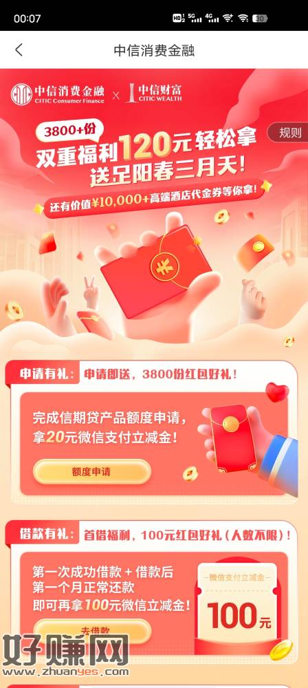 中信APP,授信领20立减金,我刚领,一天150份,不在乎征