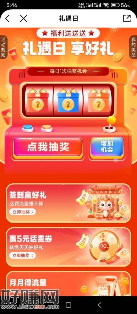 中国移动,礼遇日,每日抽奖