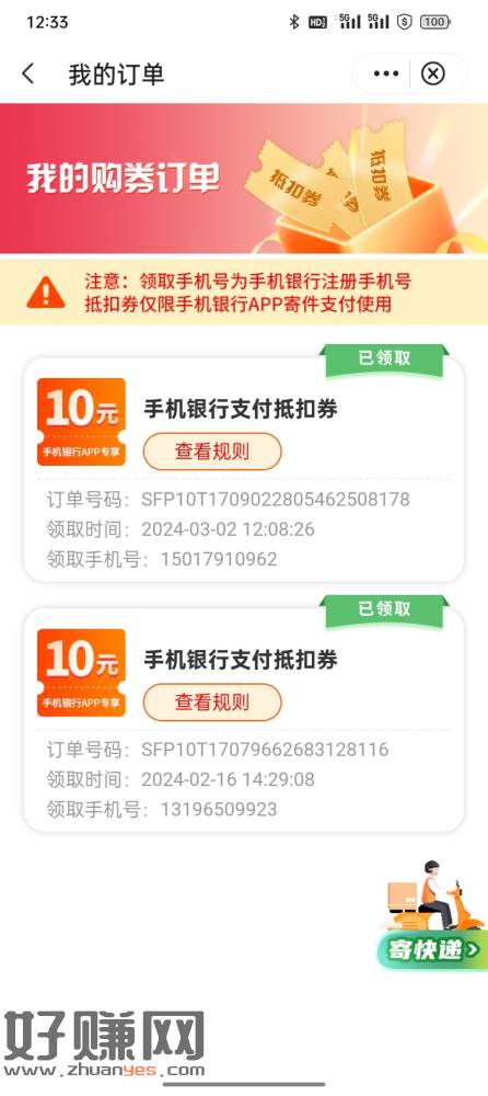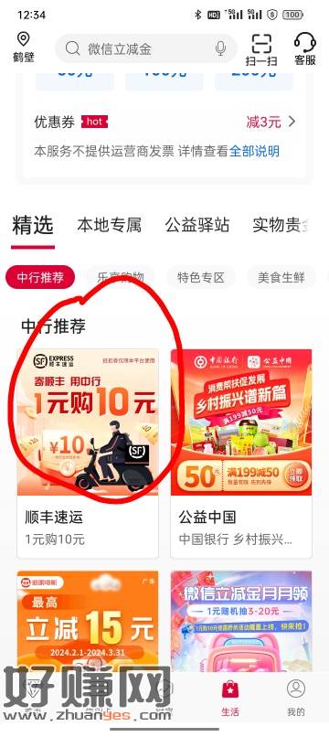 中国银行生活~中行推荐~1元购买10元顺丰