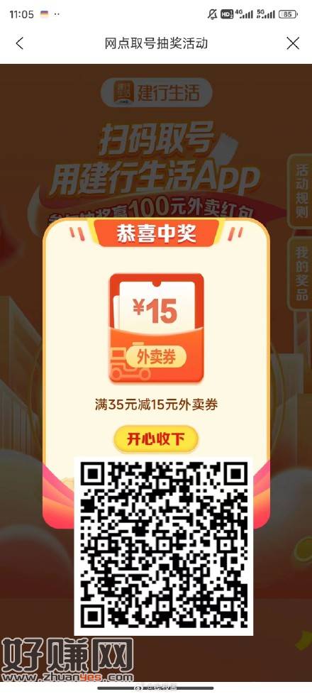 建行生活两个抽奖,第一个只能中两次,第二个天天可以抽,有需自行保存,微信扫