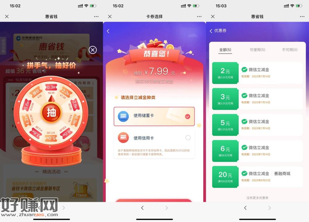 【建行惠省钱抽折扣买16元立减金】新一期!微信打开地址->抽取购买价格(大于8亓建议别买)->购买后在卡包中查看