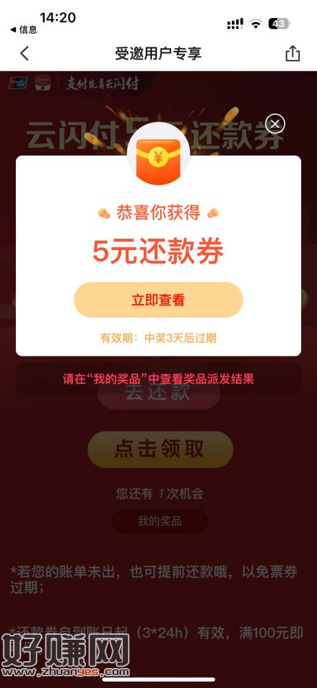 yxf领100-5xyk还款券,显示受邀,都去试试有没有资格吧!
