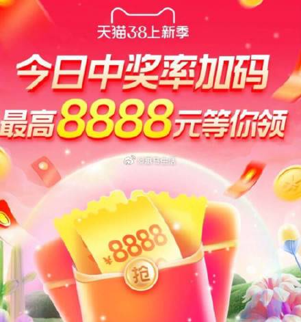 淘宝38节!记得每天来抽红包,今天全天中奖率加码哦冲~