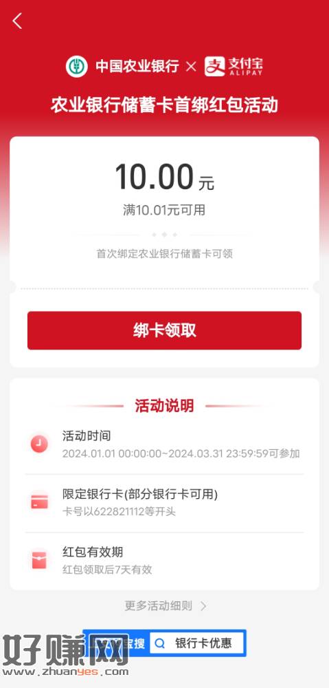 老农开邵阳市邵阳县二、三类622821112绑zfb,做之前先搜银行卡优惠看有没有活动