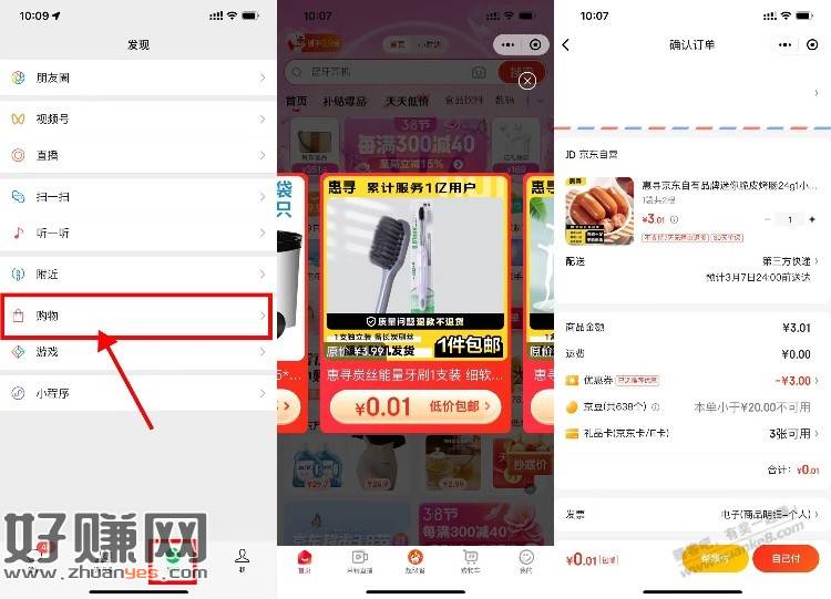 【京东部分人0.01元撸实物包邮】新一期!进入“微信-发现-购物”->大部分人自动弹出0.01亓实物,任选一个都是包邮的