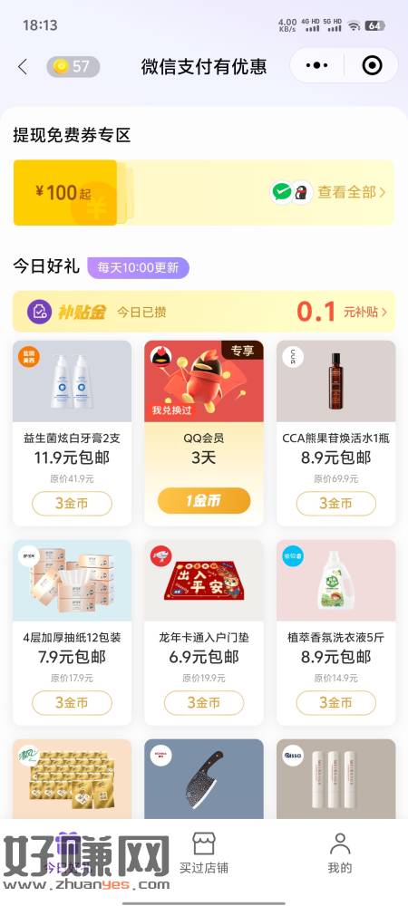 微信关注:微信支付有优惠、点击领金币、再点兑换好礼,有三天会