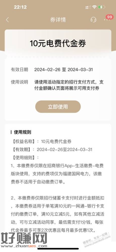 福建招商储蓄卡,劵包里面有个 10 减 5 缴费劵