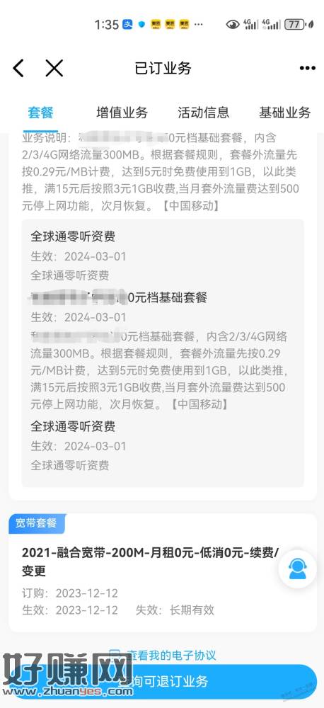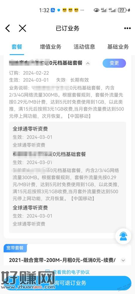 宽带是免费的,套餐问10086说不收费,不肯定是不是永久的