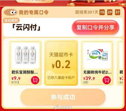 今天猫超惊喜口令输入【云闪付】翻牌必中猫超卡