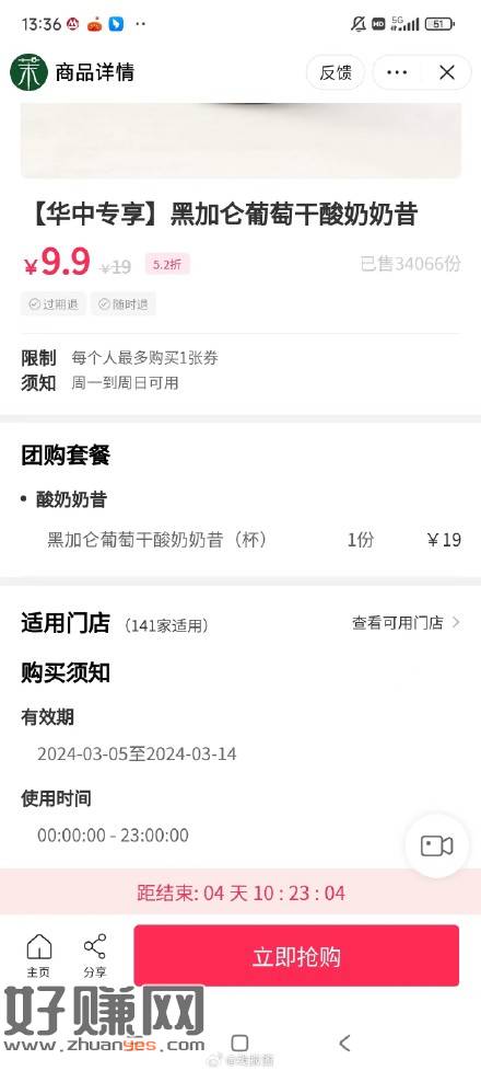 反馈,抖音搜茉酸奶,华中地区有黑加仑葡萄干酸奶奶昔9.9元