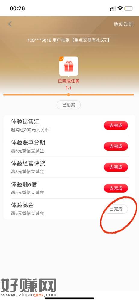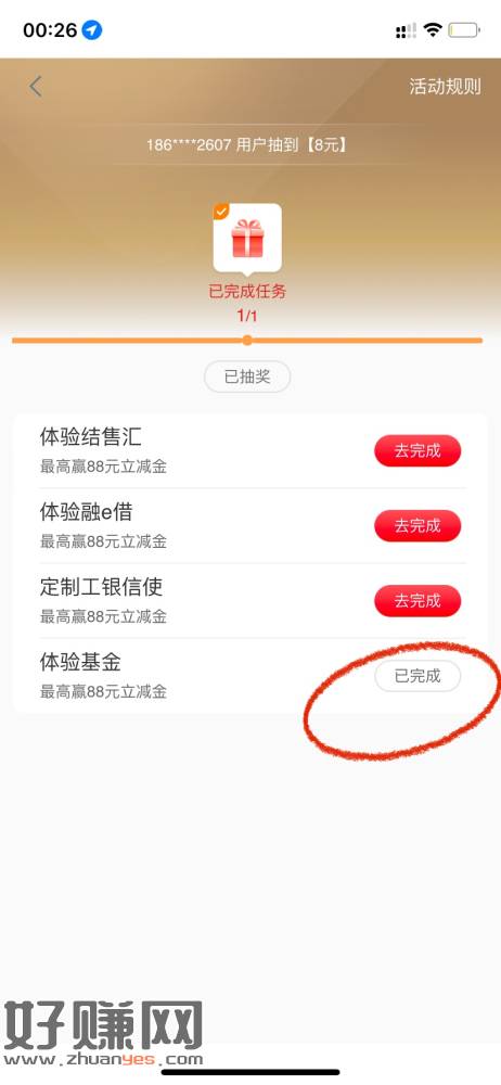 内蒙古工行 任务中心 享活动买一基金 抽一个8 一个5