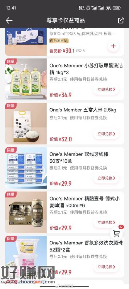 1号店会员,每月会员权益,目前这款五常大米补了,有需可兑换,需要运费