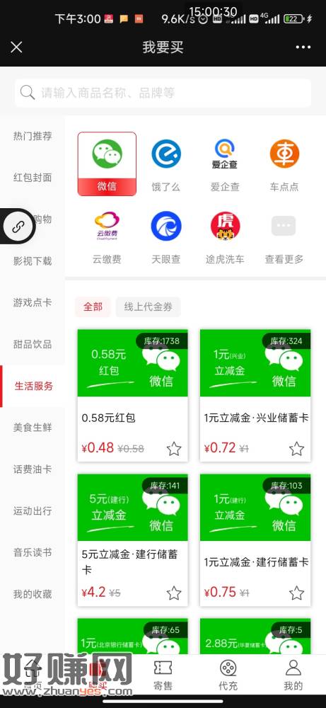 玖玖权益–我要买–选微信–那个0.58红包–润0.1