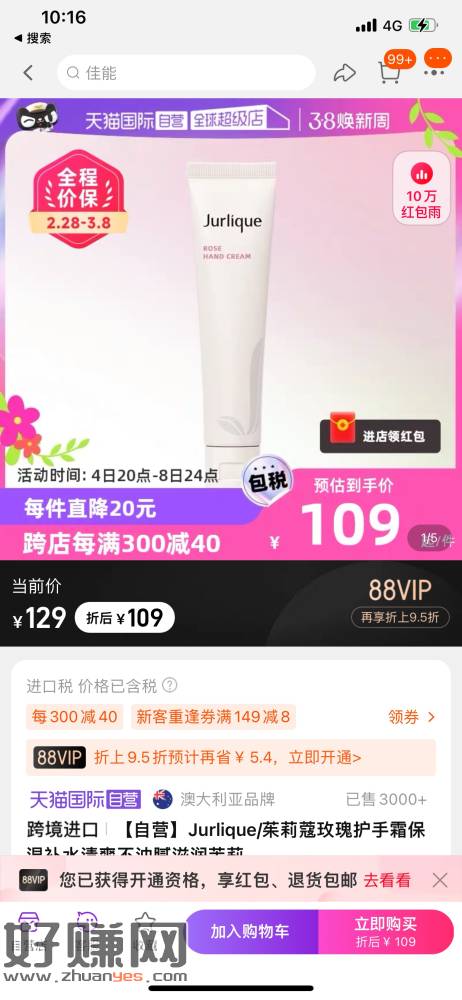 昨天做了浏览任务的今天继续抽奖,看谁中个大奖今天中了个价值100的护手霜