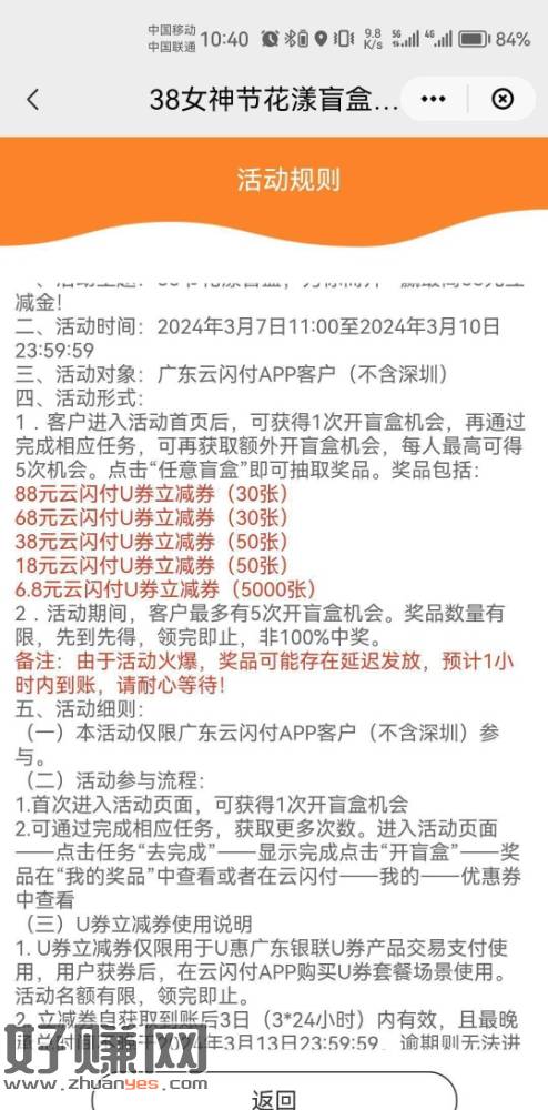 云闪付广东U惠广东超级U粉节女神节花漾盲盒抽奖