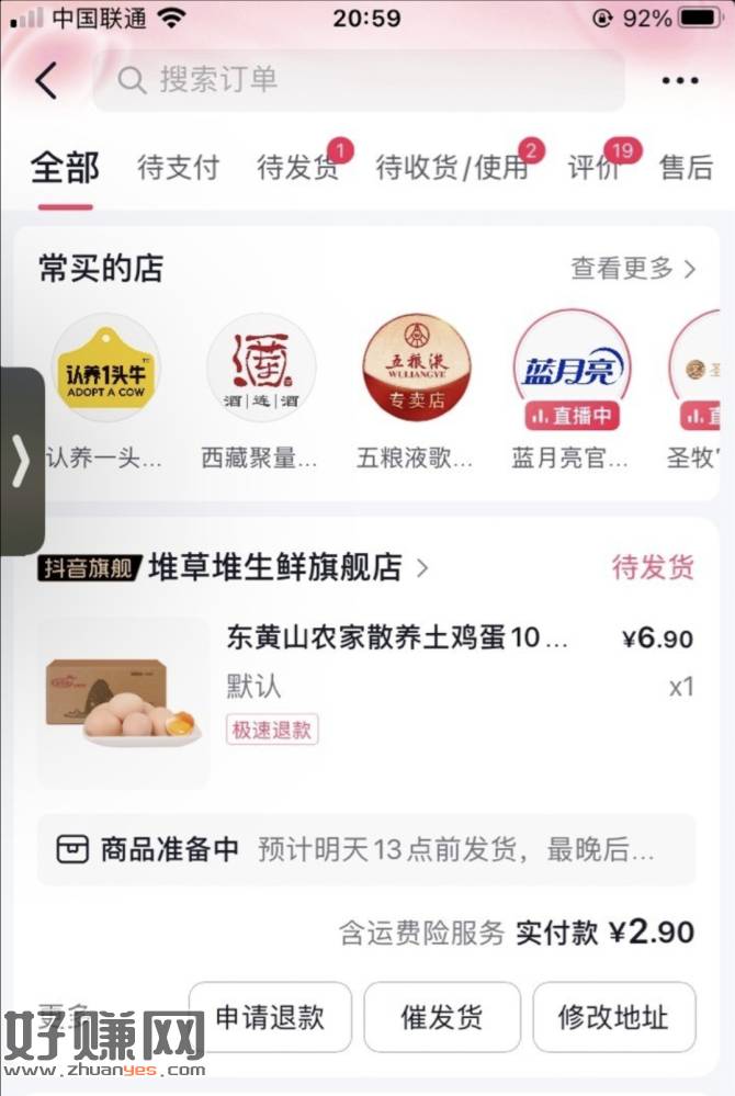 dy商城主页左下角,每天0点,10点,18点,有三场洪包雨,有无门槛4(随便荬)和39-6,49-9~