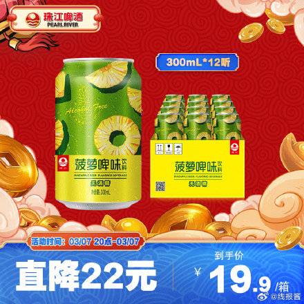 19.9元,珠江 菠萝啤饮料330ml*12罐