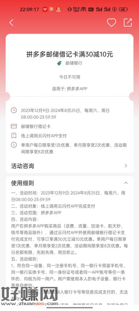 每天的ysf邮储20-5 符合的来 限卡勒种不限地方卡 出了优惠的都可以