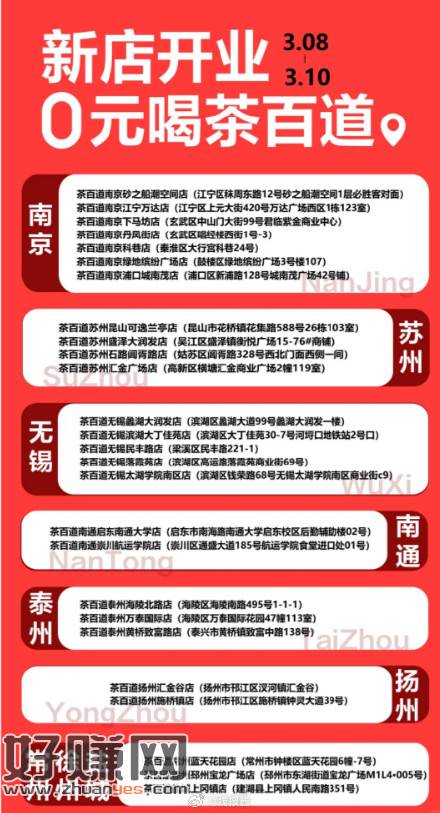 3.8-3.10,江苏茶百道25店买一送一,如图