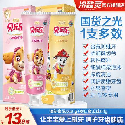 冷酸灵牙膏 ,儿童牙膏60g*2支,9.9元