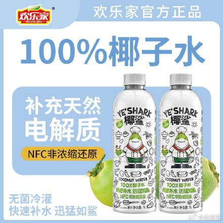 19.9元,欢乐家 椰鲨 100%椰子水 1L*2瓶