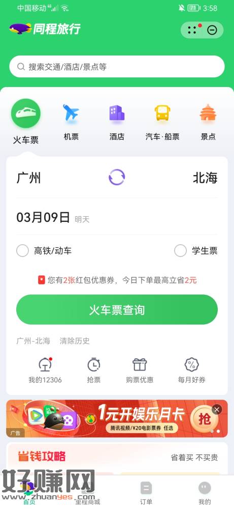 荣耀不行的或者爱奇艺会员抢完的试试这个方法。手机左滑点,火车