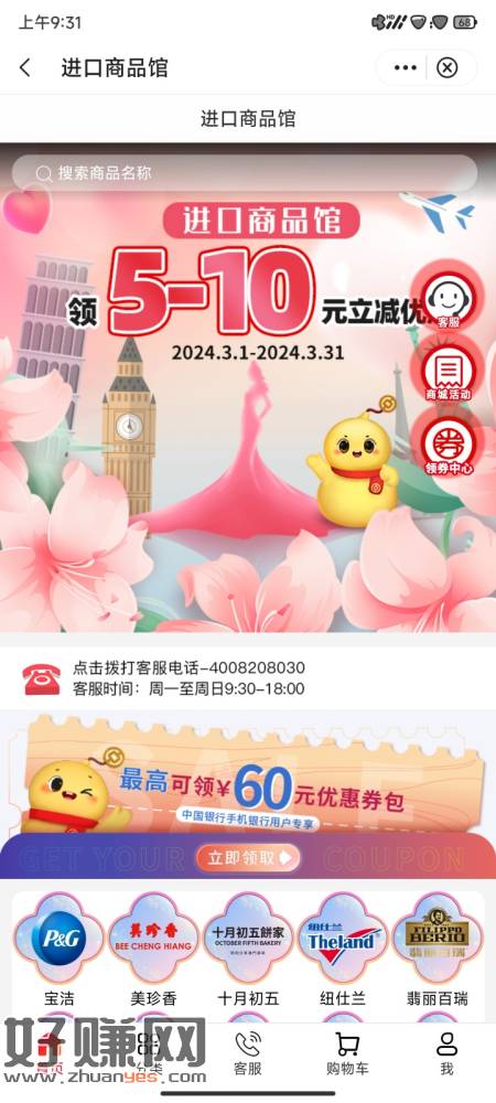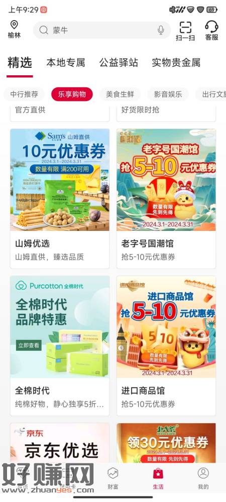中行app老字号国潮馆/进口馆看图操作,第一次进给了10元券