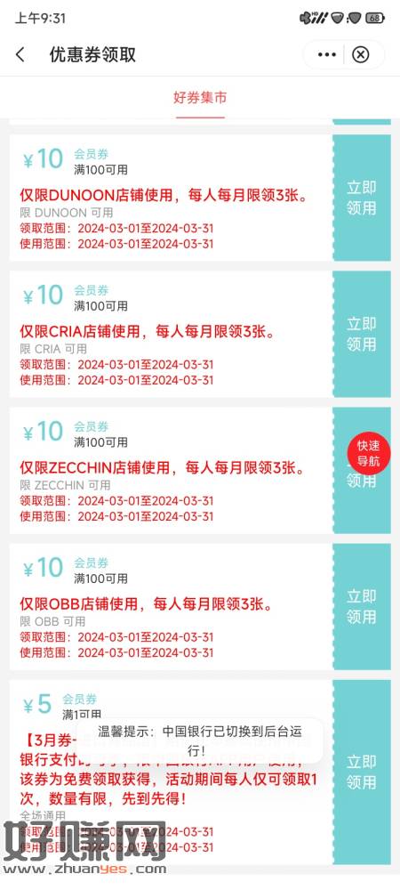 中行app老字号国潮馆/进口馆看图操作,第一次进给了10元券,第二次5元,进口馆没想要的,第二次不用进。