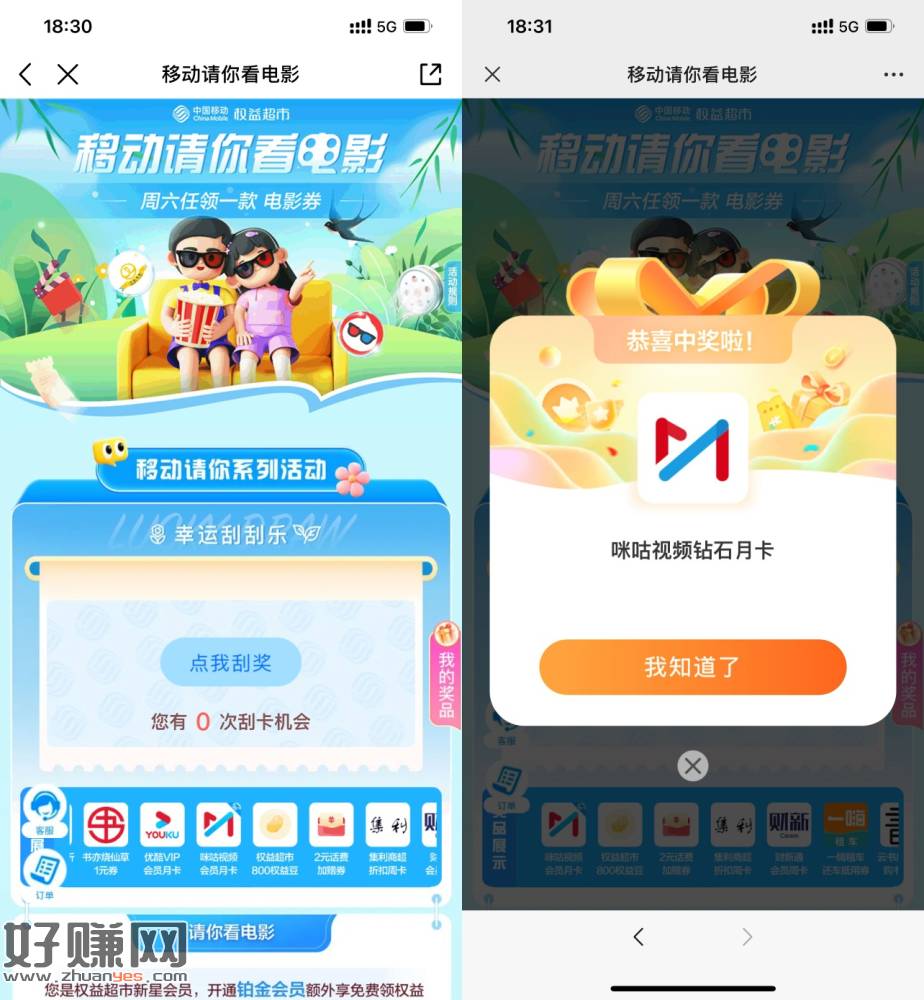 移动用户幸运刮刮乐抽优酷会员
