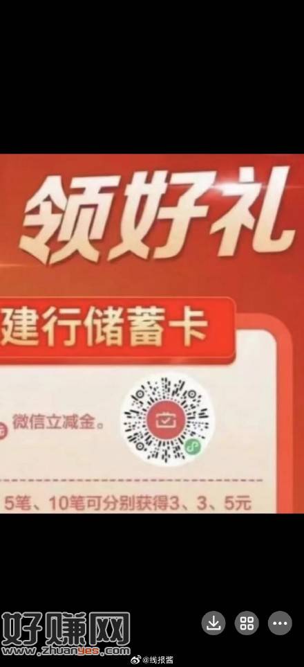 V扫 建.行 完成财富测评 ,去抽下立减 大部分是5ljj