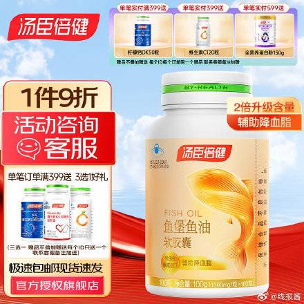 先领200-71元券 ,汤臣倍健 鱼堡鱼油软胶囊100粒
